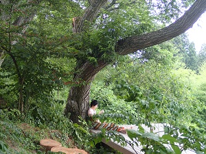 ウッドデッキで、樹齢百年以上の栗の木を背もたれにして終日読書をしたり、お昼寝をしたり、、