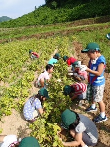 農作業体験は、泥んこになってのジャガイモ掘りです。