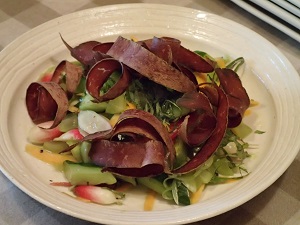 ラディッシュにキュウリに人参を使いましたサラダ。上に載せてあるのは秘密の食材です!??