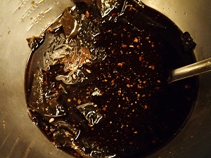 そしてその昆布の上に、笹の葉を敷いて、ポリ袋をかけ重しを乗せたのでした。
