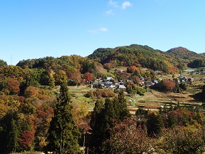 戸隠連峰より東側に望む、米田和集落の紅葉も今が盛りですね・・・