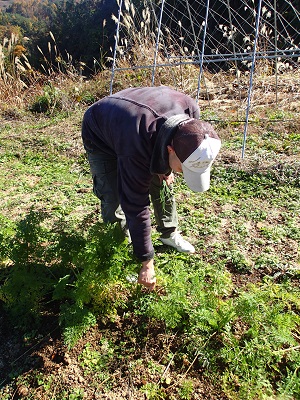 村島さん、ニンジン畑にて先日のリベンジです!!