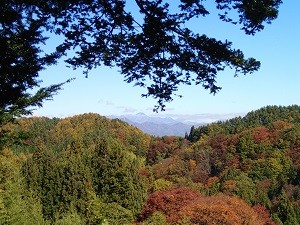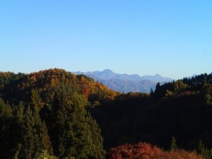 ウッドデッキから望む戸隠連峰には、まだ雪は降っていないようですね、、