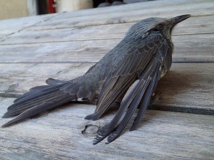 2階の窓に追突して、気を失って落ちてきたようなのです。