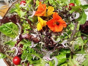 畑に行ってニンジンを掘ってきて野菜ドレッシングを作ったり、豆乳マヨネーズを作ったり、みやまこかぶを採ってきて、カブの葉のパスタを作ったり、、