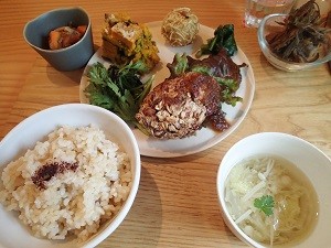 11月10日(火)には、タンボロッジの大屋さんご夫妻と一緒に、穂高にありますマクロビオティック料理のカフェ「満月ほっぺ」さんにお邪魔をさせて頂きました。