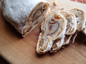 「2015年のシュトーレンは、今秋長野県より届いた「百年栗」が主役です。百年栗は、これまで、わたしが扱ってきた「栗」の中で、もっとも繊細で、最も味が濃く、そしてストーリー性のある栗だと感じています。・・・」