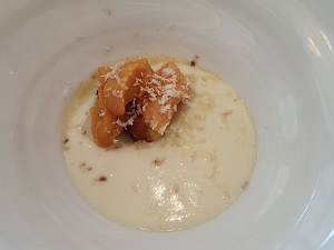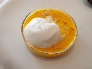 最初に、カボチャのヴルーテ。ヴルーテとは、「ビロードのようになめらかな」という意味なそう、、