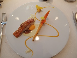 次に金目鯛のポワレ。オレンジ色系で盛り付けられた美しいプレート!