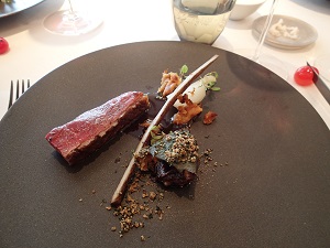 金目鯛がほろりと崩れ落ちそうなほどふんわりと焼き上げられていて、添えられたバターナッツカボチャとその上のニンジンの酢漬けも、、まるで和食を頂いているような感じもするほど、素材の味が活かされていてシンプルで繊細で複雑な味わいなのでした・・・。