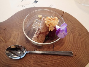 このとてもなめらかなカボチャのクリームの中に、バナナのフレーバーが隠されてあったりパセリの漬物!が潜ませてあったり、、一匙ごとに異なる味と香りが口の中に広がるのでした!