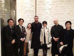 エグゼクティブシェフのリオネルさん、村島さん、サービスの高橋さん、ソムリエの若林さん、てまひまのまぎーさん、農楽娘と一緒に!