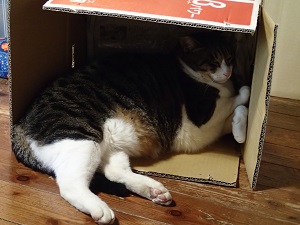 ついに、ミカン箱オーバ!??、のチビ太ん。。