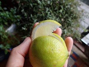 今日はお昼ご飯の後で、美味しい紅茶に、このベルガモットを絞って飲んでみました。。