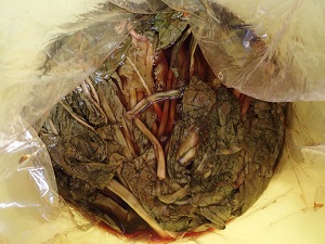 土間に置いてあります、野沢菜漬けの樽を開けてみました!