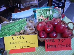 今回は、福餅の他に、キクイモと植物性ミネラル栽培のトクナガさんのリンゴも持って行きました。