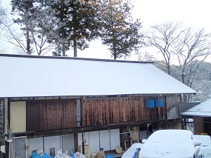 農楽里では、薄雪が積もる中、静かで穏やかな新年を迎えています。