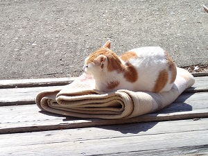 チャイも、毛布の上で気持ち良さそうに日向ぼっこです!