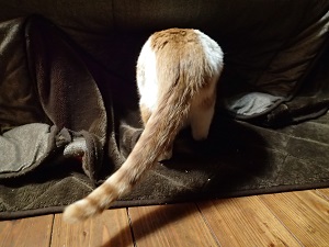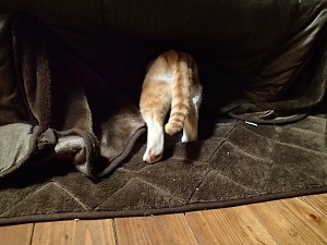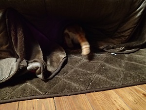 のーんびりと、こたつに入って行くチャイの後ろ姿をお届けします!