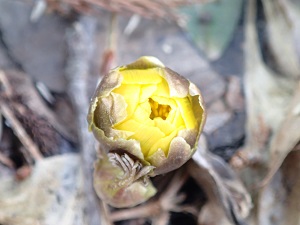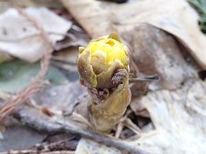 さて、先日のフクジュソウの蕾の写真を見ました友人が、「ニコニコとしていて左手が招き猫の様に手招きをしているよ」と教えてくれました。