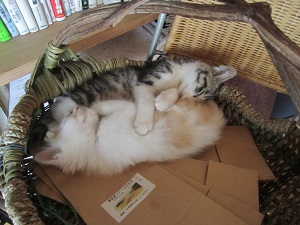 ミコ太もチビ太もうちに来て間もない頃、、絡みあって寝ています。二人とも小さかったなぁ、、