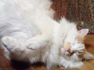 ある晩、農楽娘と一緒に農楽里へ帰る夜道のこと。南長野ゴルフクラブの峠を越した下り坂の途中で、走らせていた車の前を、右から左へふわーっと狐の尾のような太い尻尾のフワフワの猫が道をさっと横切ったのでした。一瞬「え、今のは狐?いや、大きさと姿からは猫! まるでお伽噺に出てくるような白狐の様な猫!」と興奮したことを覚えています。