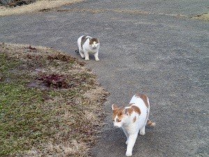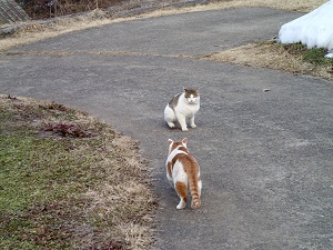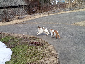 よそ猫は一瞬ひるむも、またついて来る、、、