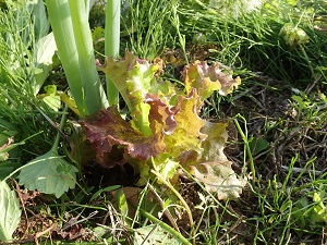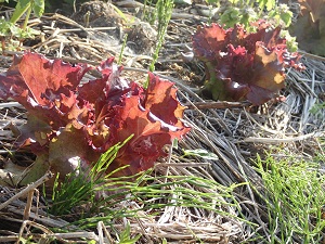 早朝、畑の草刈りをしながら、朝陽を浴びるリーフレタスたちの美しさに思わずシャッターを切りました。。