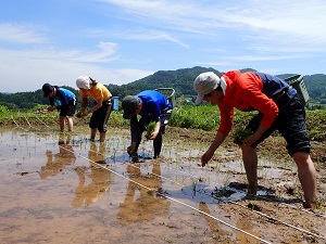 この田植えは、 東日本大震災で被災された 福島県の児童養護施設 愛育園の子どもたちに 支援米「むすび米」として届けます。