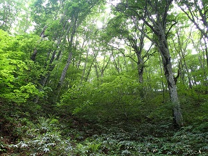 ブナの新緑がとてもきれいでまぶしかったです。。
