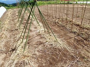 今日の農作業は、早朝にインゲンの種まきなど、、先日の雨のおかげで畑のお湿りはちょうど良い感じです。
