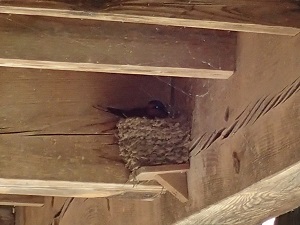見つめる先には、抱卵中のメスツバメがいるのです。。
