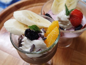 デザートは、ローチョコレートムースのミニパフェと、ローストロベリームースのミニパフェ!