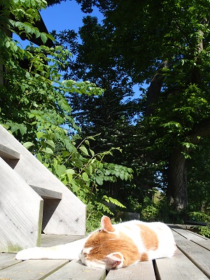 久しぶりに低気圧の影響を受けてしまい、ひどい頭痛にはならなかったものの頭も身体も重だるくウッドデッキでチャイと一緒に休みました。。