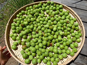 収穫第1弾、、まだ固い青い実のうちに採りまして、、