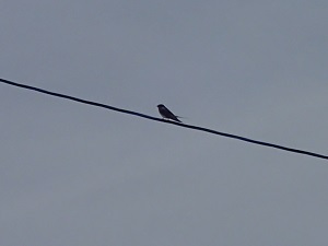 近くの電線にとまる一羽になってしまったオス、、
