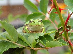 今日の応援団はアマガエルくん、