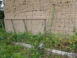 作業ですが、土蔵の西側の草ぼうぼうのスペースをきれいにして朝顔の鉢を並べたいな、と思い、まずは草刈りや置きっぱなしにされていた道具類の撤去など、、