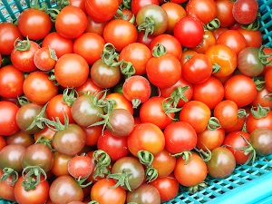 トマト、ミニトマト、バジル、キュウリ、ズッキーニ、間引きニンジン、リーフレタス、オクラ、ゴールドピーマン、シシトウ、青トウカラシ、丸ナス(ローザビアンカ)。他に、ジャガイモ(キタアカリ、シェリー)、カボチャも入りました!