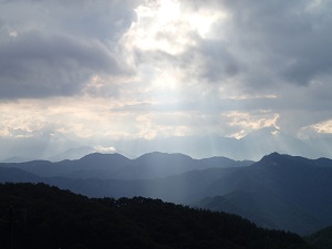 今日の夕方、、雨が落ちる直前の北アルプスの光景です。