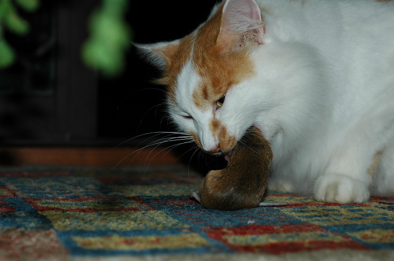 ミコ太が久しぶりにネズミを捉えてきて、食べ始めたのでした。