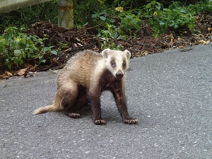 その途中、道の真ん中に寝そべるアナグマに遭遇!