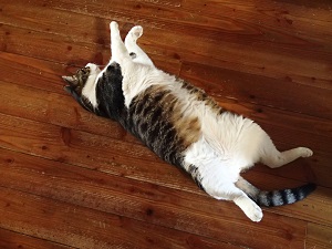 グリンツーリズムや山村留学の子どもたちがいない日には、安心して母屋の中で伸びていますね。何しろ、猫の天敵は「子ども」ですから!(苦笑)