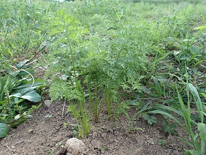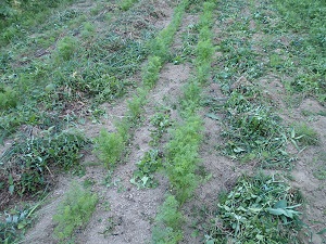 ニンジンはまだ赤ちゃんなので、イヌビエやスベリヒユなどの勢いを増してきた雑草を刈り取って助けてあげないと!