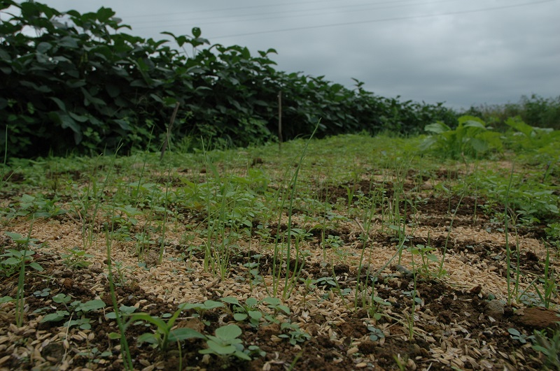 畑では、タマネギの赤ちゃん(苗)が、すくすくと育っています。