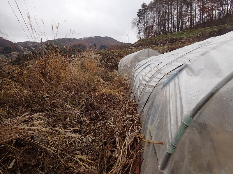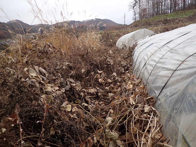 今日は、育苗用ハウスの周りを覆ったクズの草刈りです。