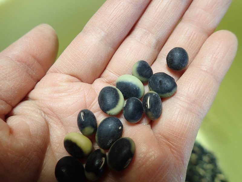緑色と黒色のツートンカラーで、馬の背に掛ける鞍のような模様をしているので、「鞍掛大豆」というのですね。