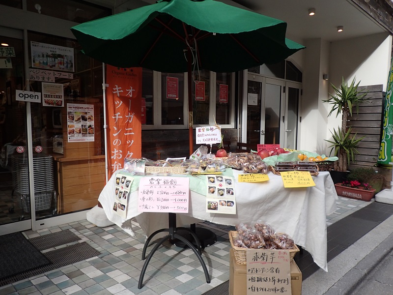 初日はお天気が良くて気温も割と暖かく身体が楽だったのですが、2日目の午前中は土砂降りの雨、そして風も吹いてきて、商品が濡れないようにテーブルのセッティングを細目に動かす等、少し大変でした。。