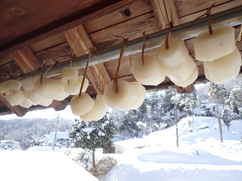 昨年秋の大根は、9月の長雨のためにほんの少ししか採れませんでしたので、集落のばあちゃんに分けて頂きました大根を使いました。