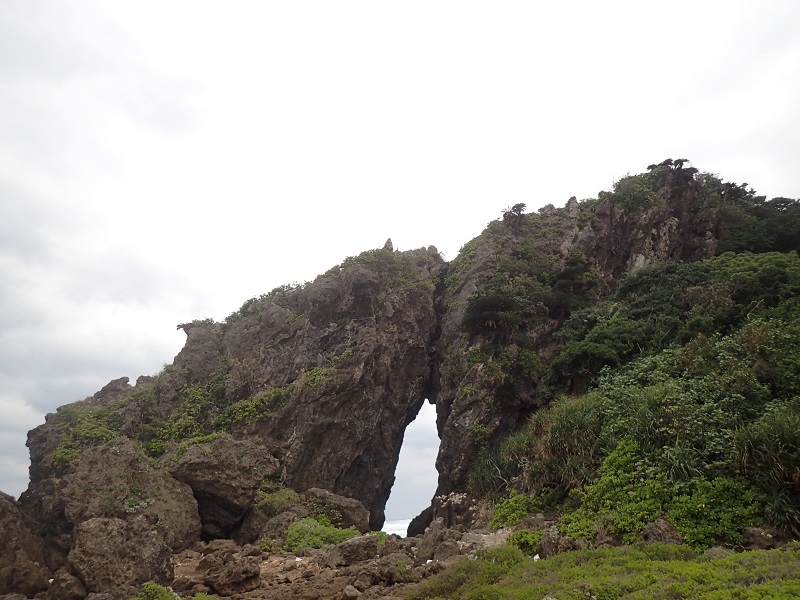 バスは久米島の北側の海岸に向かいまして、「ミーフガー」と呼ばれる岩壁へ。女性が拝むと子宝に恵まれるというパワースポットで、一年のうち7月中旬から数週間、岩の間から日の出を見ることが出来るそうです!